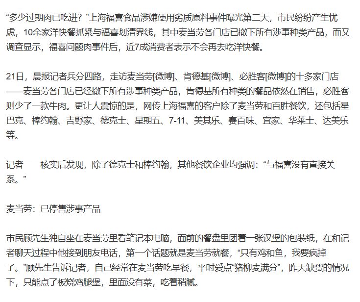 福喜时间。。。。。当年沸沸扬扬。。。。现在逐渐被时间冲淡后,开始了某种布局。。。。先试探市场的风向。。。。再逐渐回归