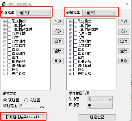 碰撞报告不仅可以检查出当前模型碰撞的管线,也能检查当前模型与链接模型碰撞的管线,最后导出Excel方便查看。