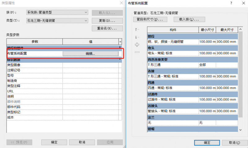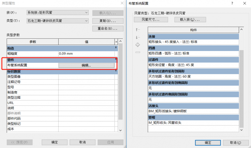 11.风管/管道布置规则设置。翻模前需要根据图纸设计说明中管道类型及材质设置(分类型、分管径、分材质),全部规则设置完成,开始翻模。类型过多,需根据项目具体情况设置,不再赘述。
