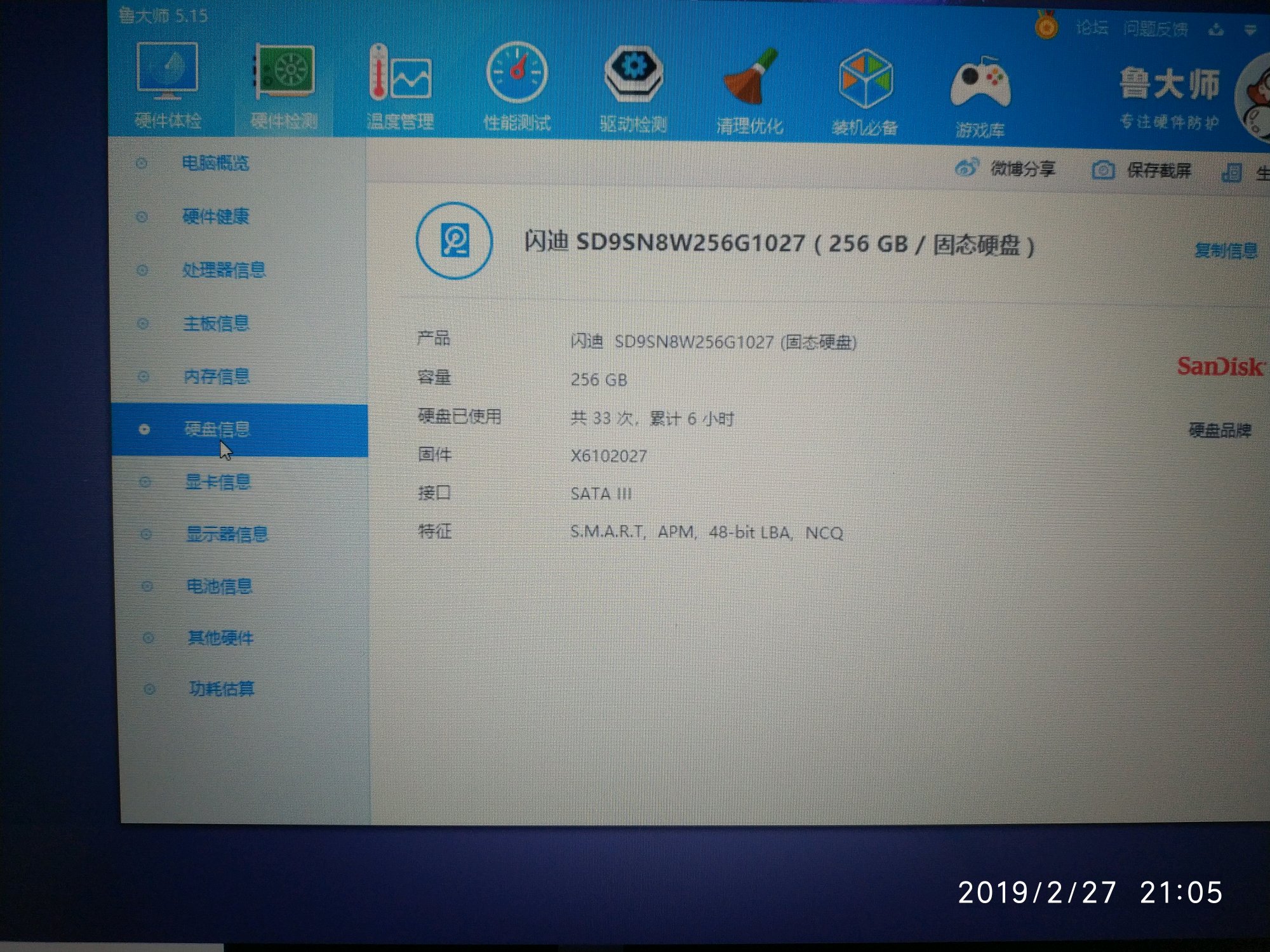 我这是算运气好还是差,好像硬件都还不错,只是开机33次6小时