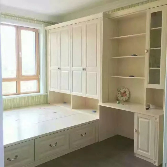 我是自己买板找木匠做的,一个这个一个大衣柜一套橱柜材料人工加一起一万一