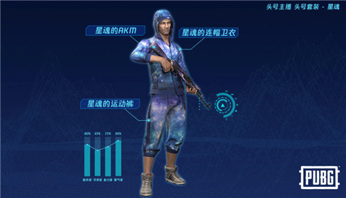 至于星魂的头号主播定制套装,则是凸显了一个骚字,从连帽卫衣到运动裤再到手中的AKM,都是骚气十足引人瞩目。像星空一样的蓝紫色混搭,成为了星魂定制套装的基调了,相比其他几个主播的套装,星魂骚气而绚丽的外型,相信会吸引到非常多的年轻人。