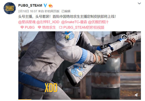 从今日开始,四位中国主播的专属皮肤将持续4周进行限时销售,一旦错过的话,后续就有可能成为绝版皮肤了。因此,喜欢这些皮肤和玩家们千万不要错过这次的销售活动,除此之外,大家关注PUBG官方微博的最新活动,也有机会成为幸运儿,免费领取这些精美皮肤!