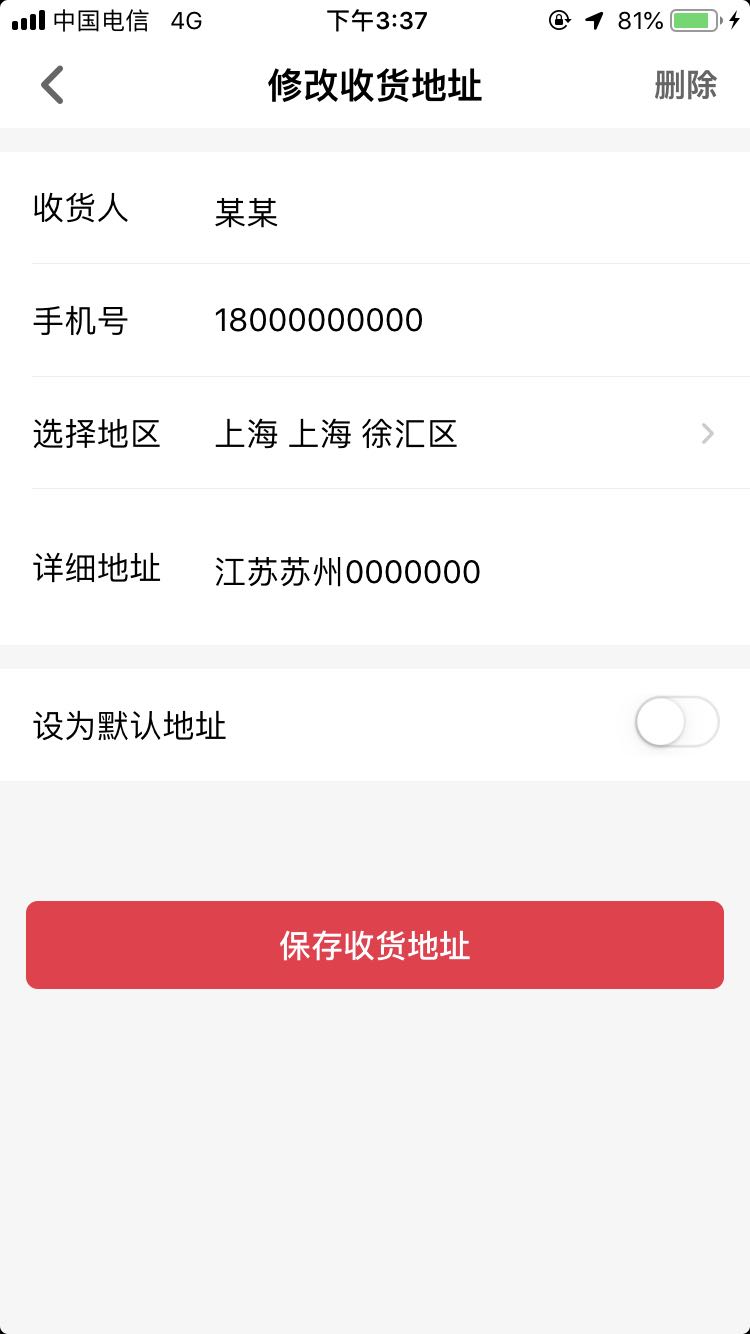 然后在详细地址里面写真实地址,(一定要把真实的某某省某某市写上)