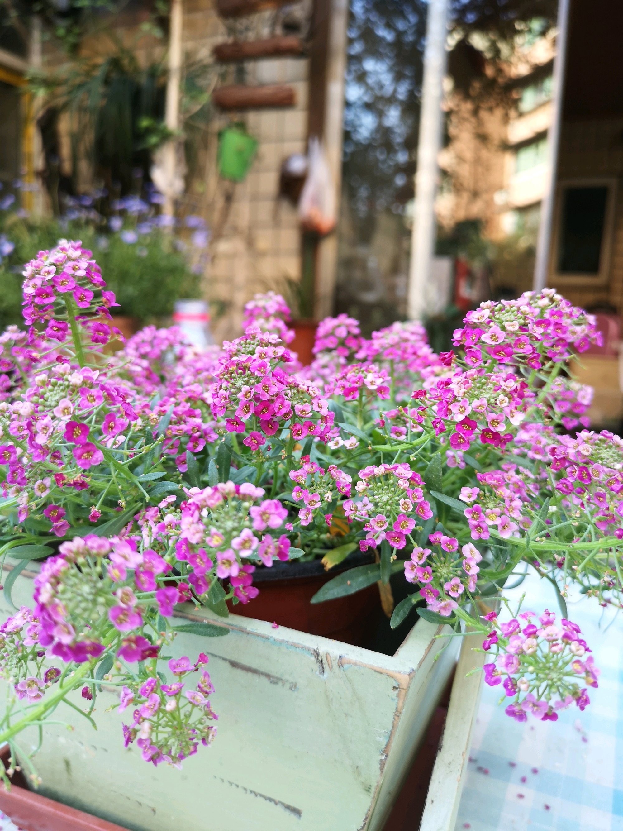 多年生木本为主,再春季配点草花。蓝雪花,双色茉莉,都好养且贱,铁线莲就没死过,月季也好养但养得好要靠技术