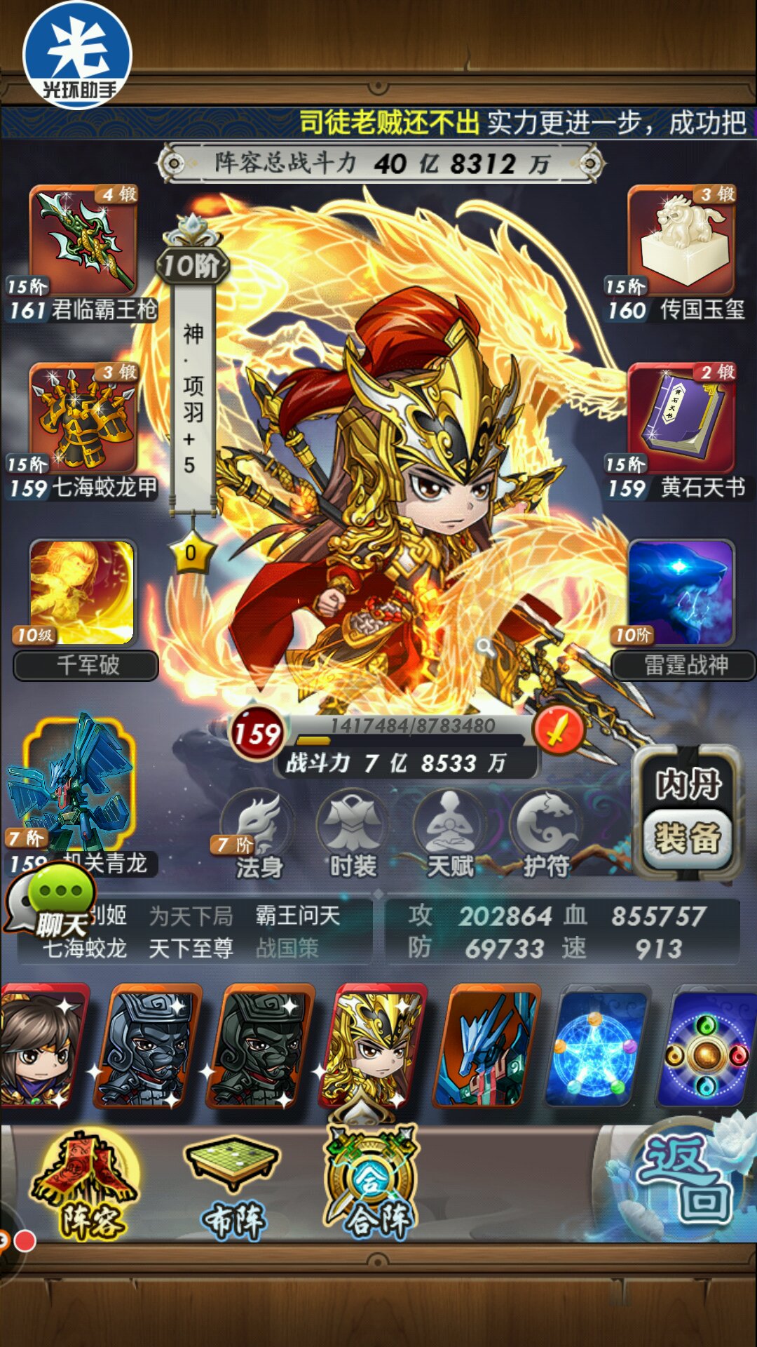楼主目前阵容及战力(虚战有点多