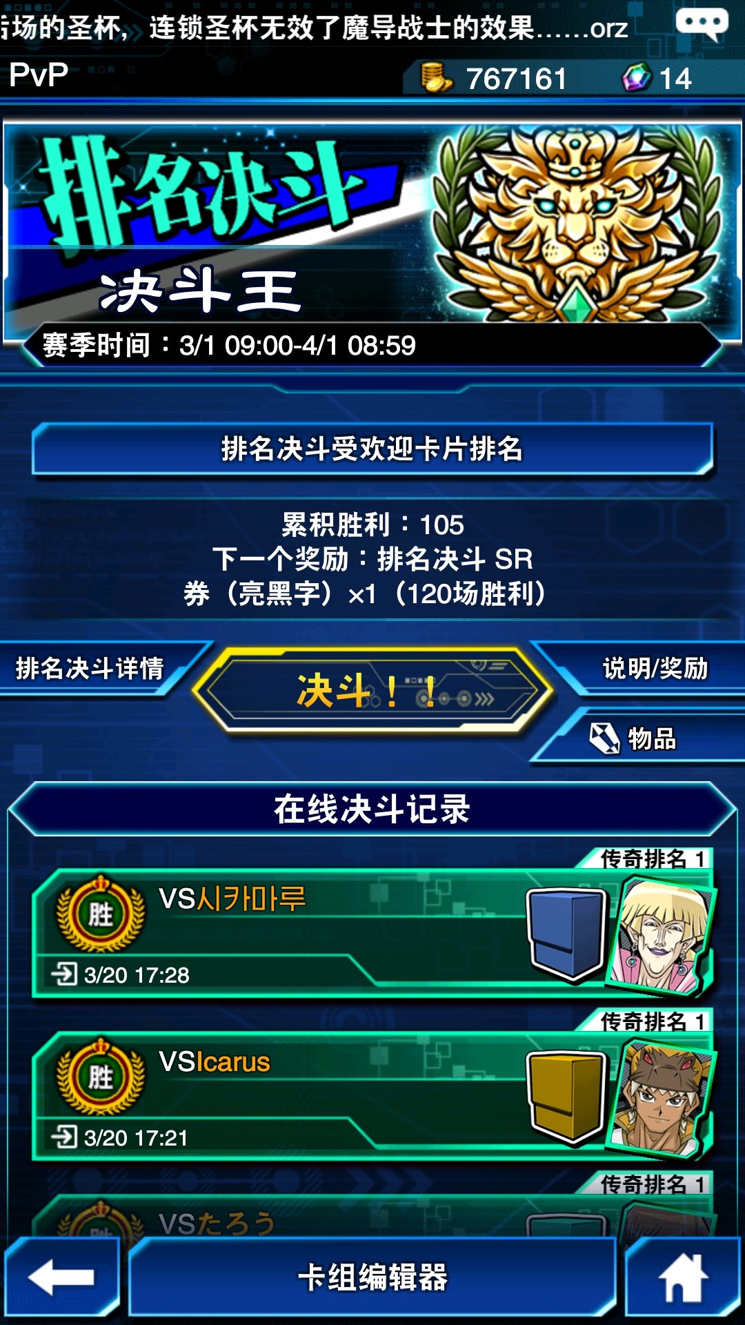本贴会统计前3天各大论坛的上王卡组,以及之后的各种非主流上王牌组,也欢迎上王的小伙伴过来打卡