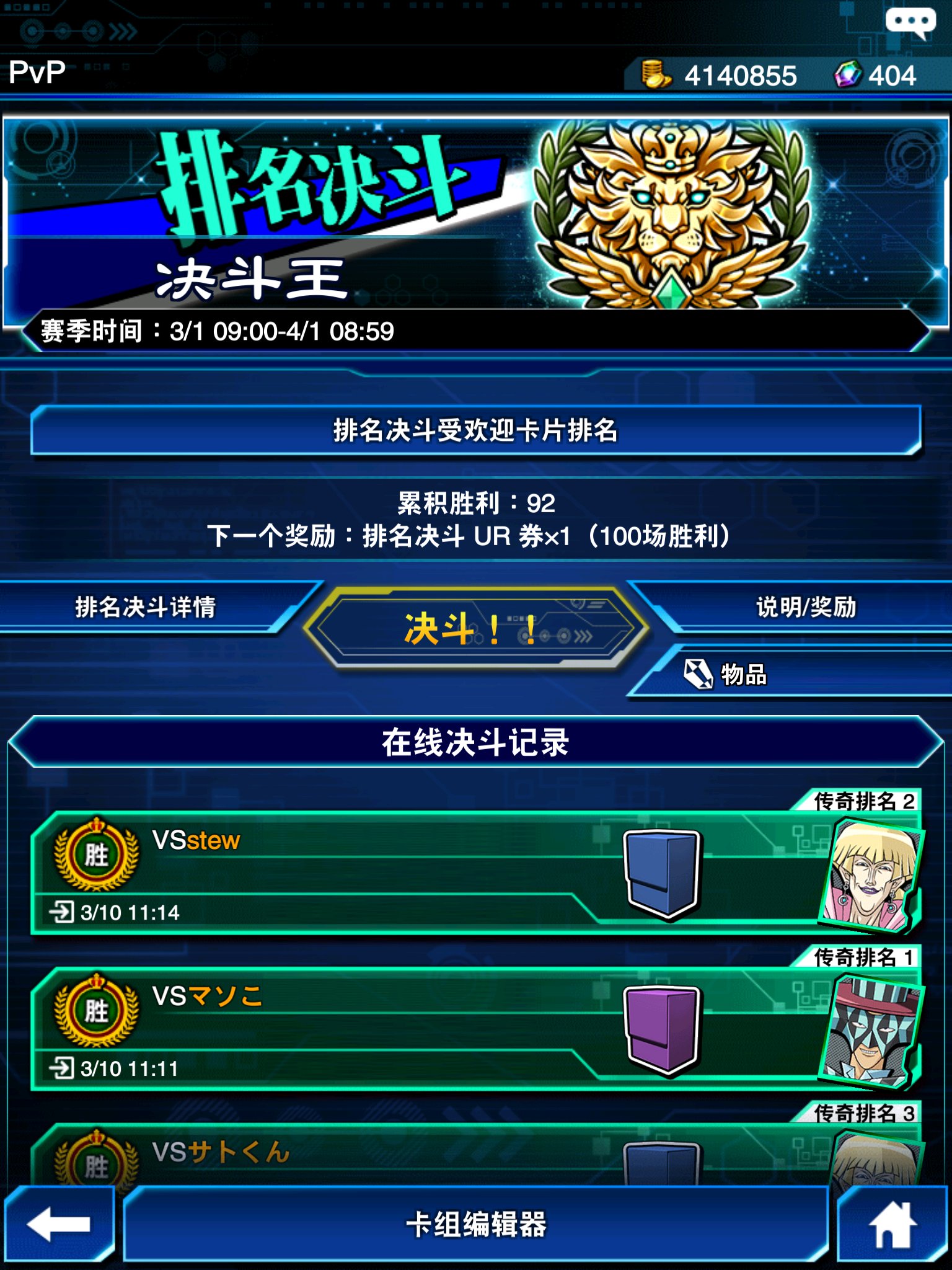 10号上的王吧,之前一直打剑山,抽小角龙,8号开始打排位的
