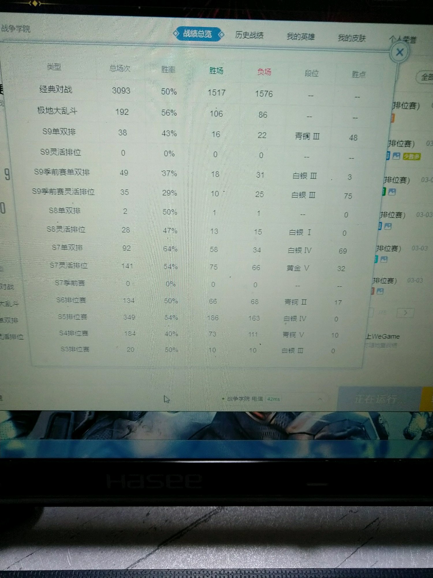 从s2开始玩,到s3才打过排位,到现在一直在青铜,白银游走,