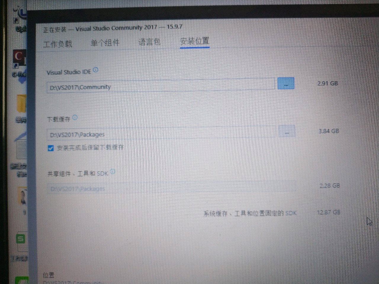 求助,我在安装vs2017的时候,因为c盘空间不够,所以想安