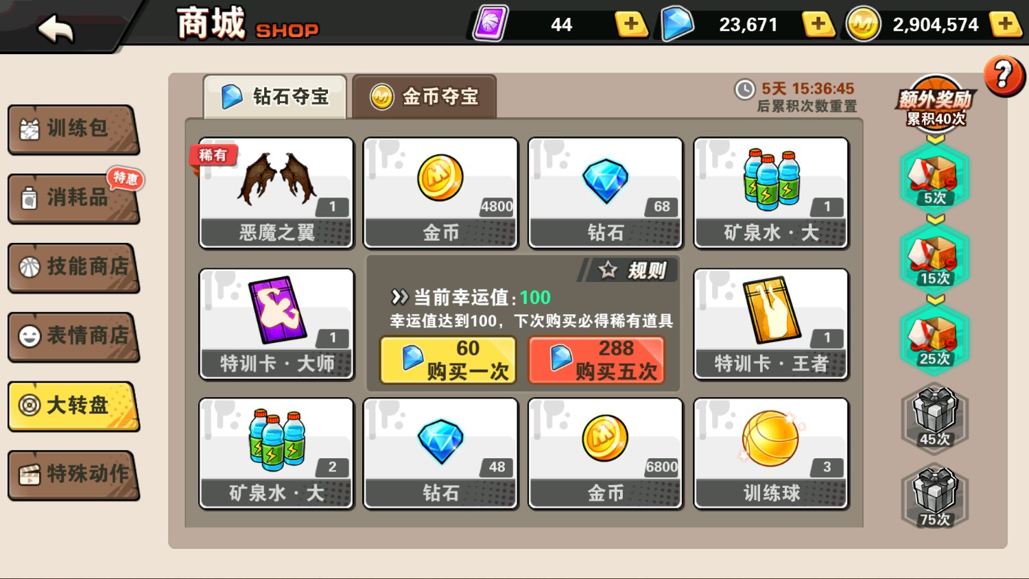 每周25次金币抽奖,点成了钻石抽