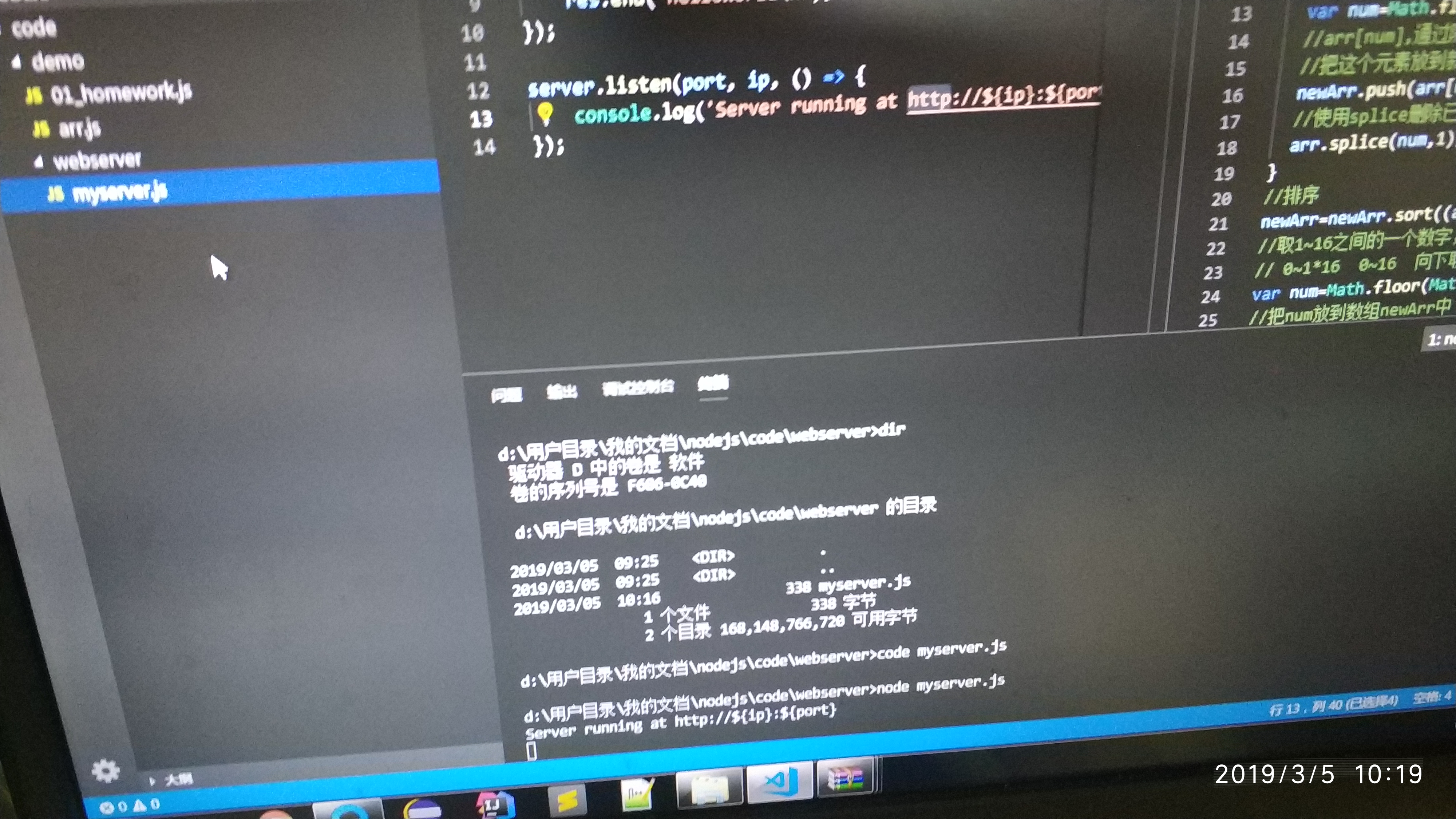 你ip和port定义了没,node版本支持ES6吗?