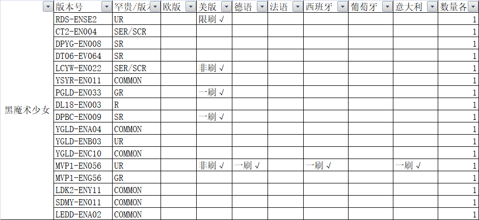 大种类收取黑魔女tcg