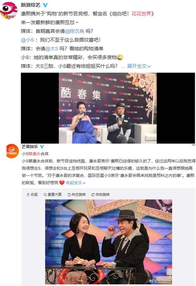 再加上有网友爆料遇到《康熙来了》的制作人B2,称小S和蔡康永将会合作新节目。