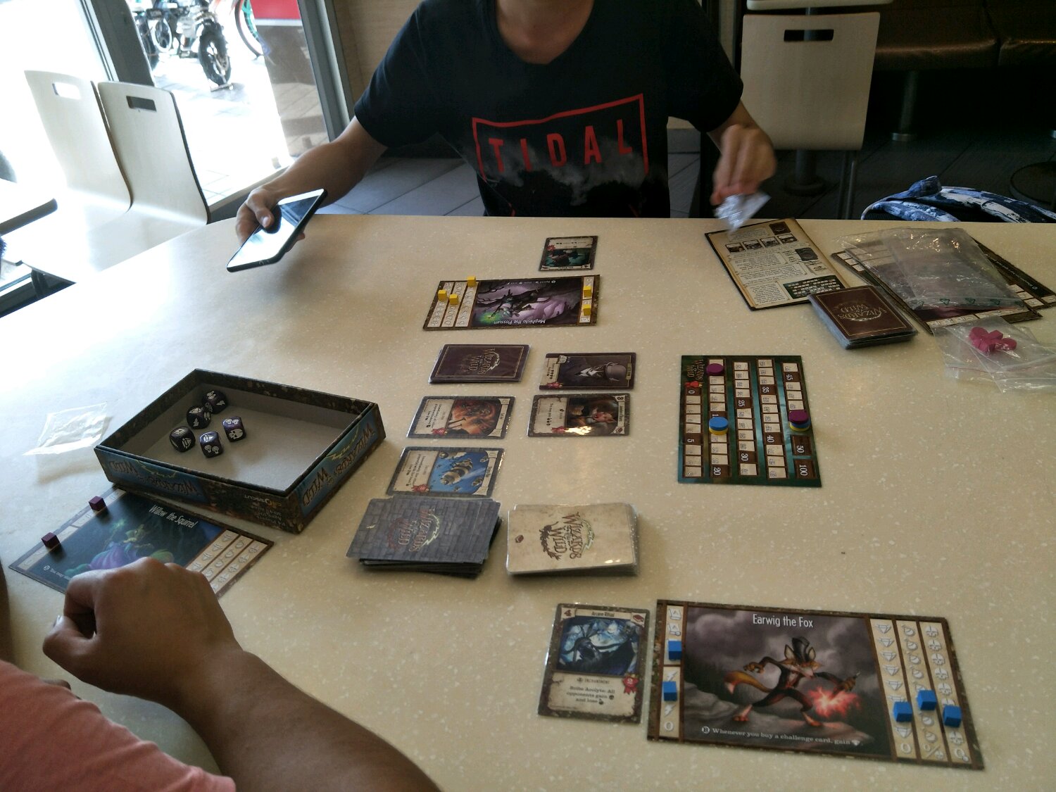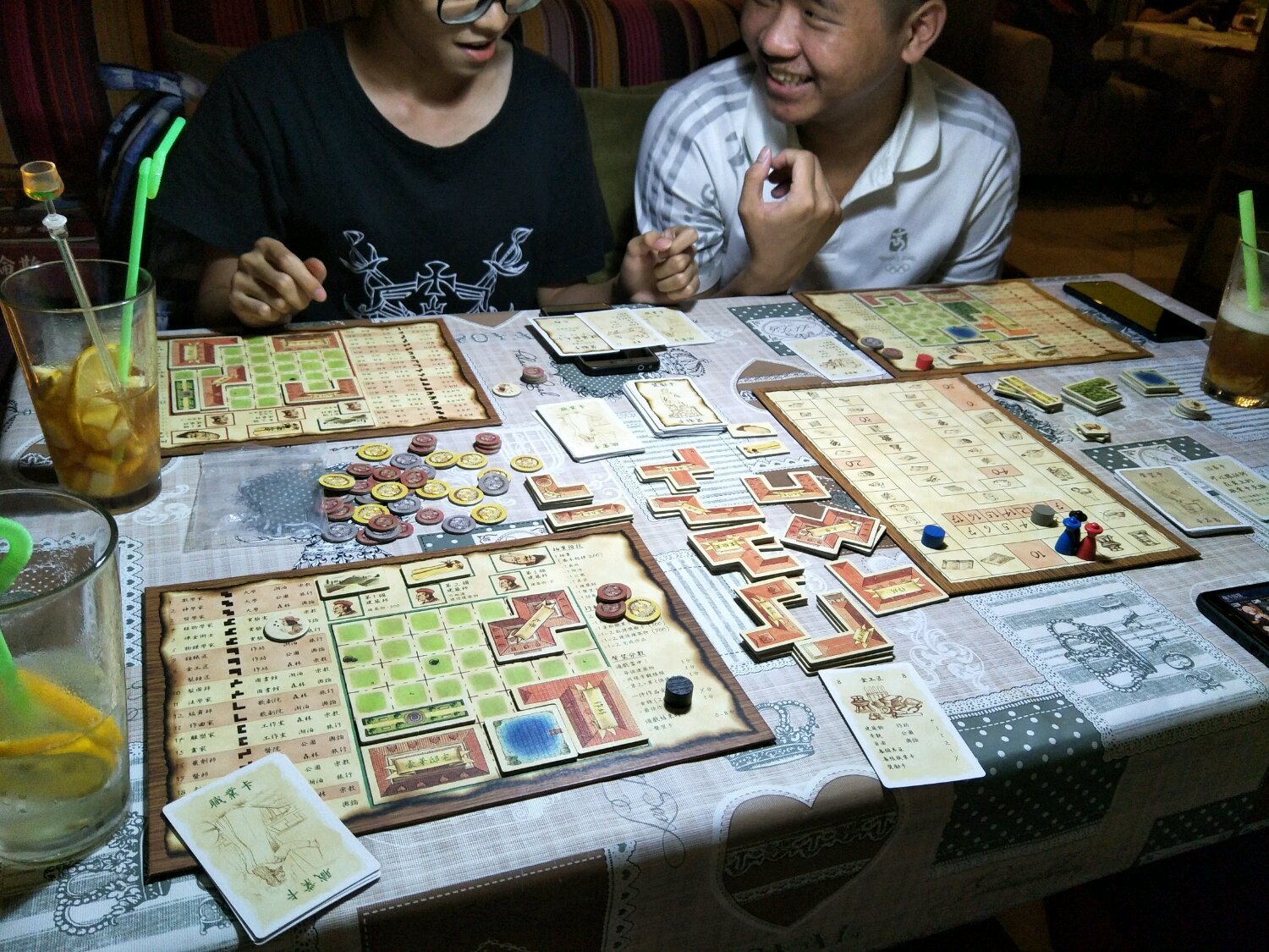 之后打了把完全不卡的卡车司机(太快了,忘记拍照),胡总便回去了。留下我们3人玩锻骰物语,愚昧的骰子游戏没啥好说的,太阳石太强不平衡。