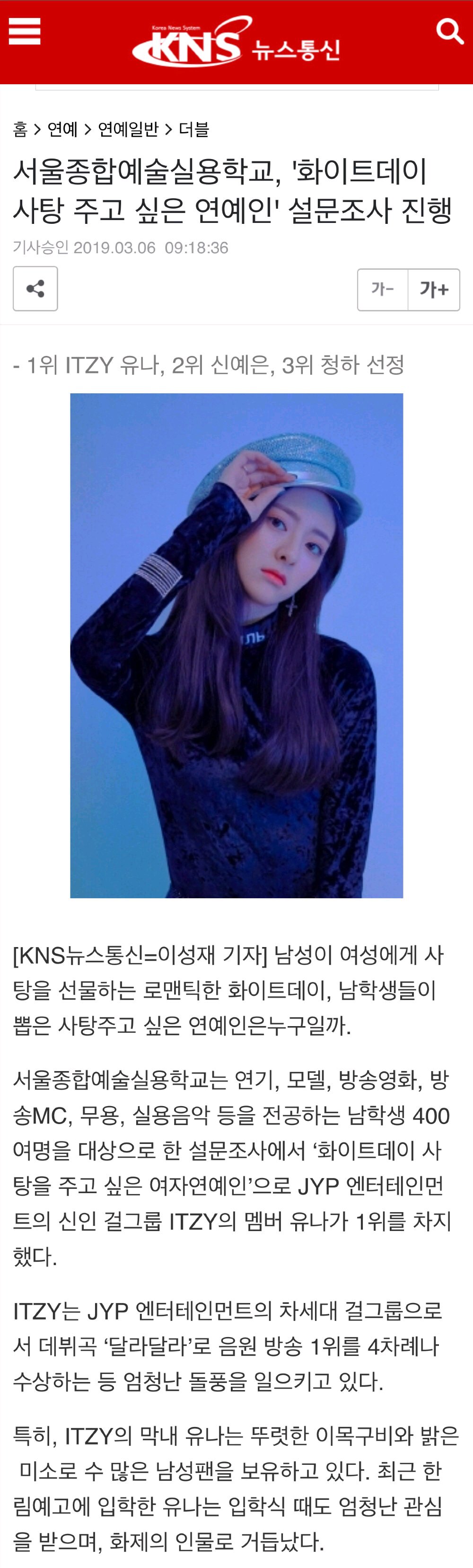 190306_新闻~问卷调查【男学生最想送白色情人节糖果的女艺人是~ITZY有娜】