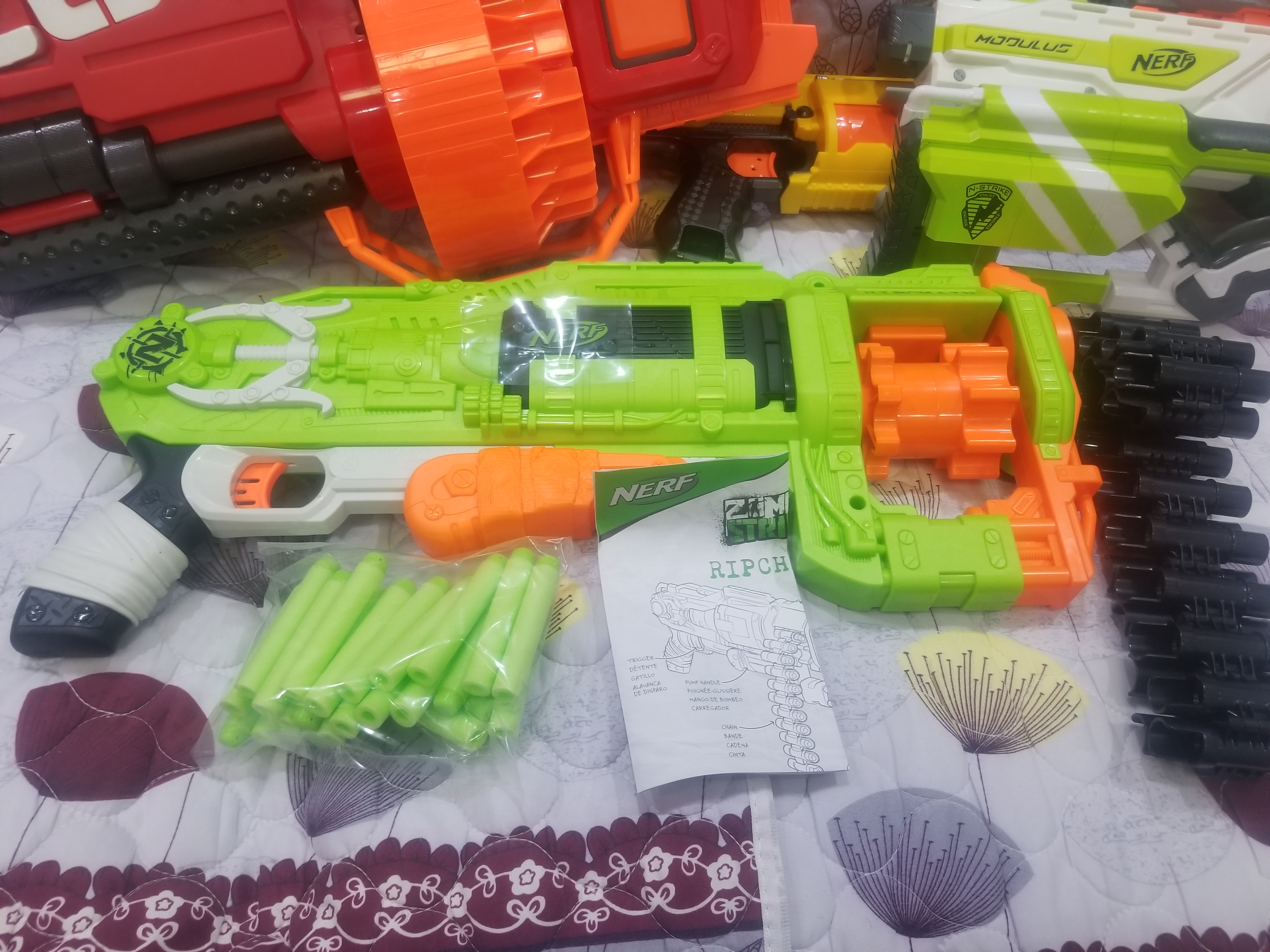 今天一共到了五把,经典钢炮,摄影横冲,猛犸(好像是叫着名字),僵弹链,模块蓝狙。