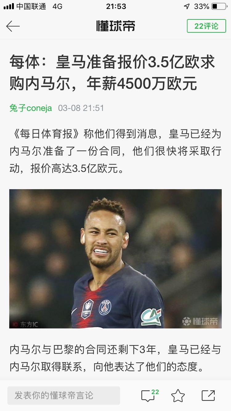 皇马出2000万,每体出3.3亿