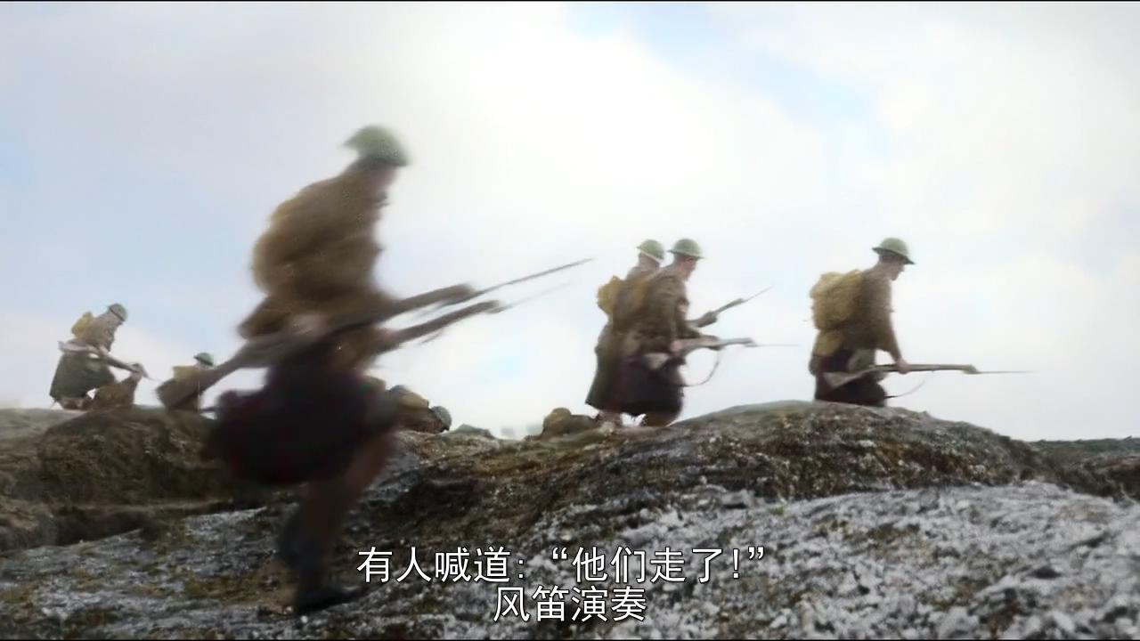 苏格兰人吹着风笛最先跃出战壕。