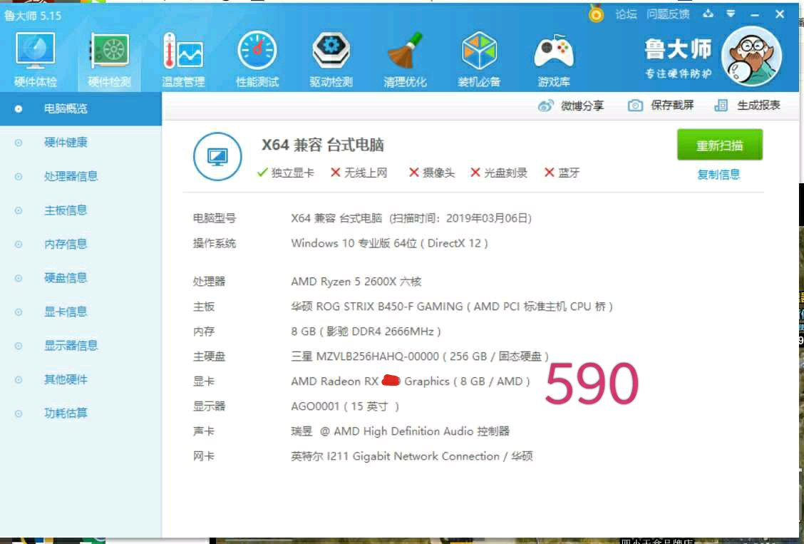 不知道为什么,鲁大师不识别rx590