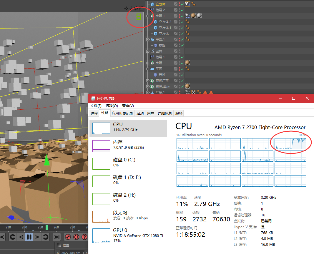 C4D 动画预览 无法支持多线程吗? 做数量多一些简单模型动画,都卡到爆。。