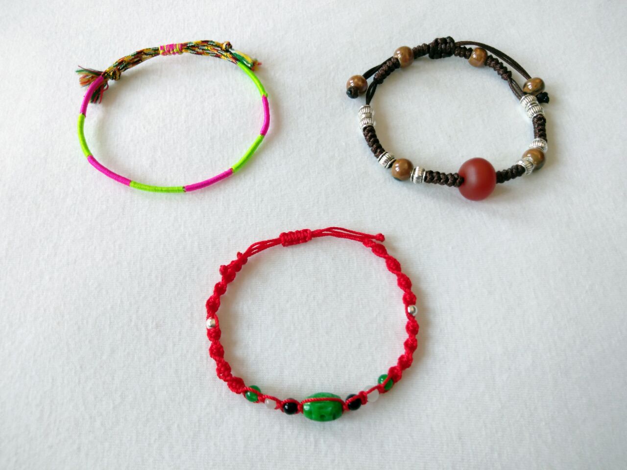 经过反复改进终于能向你们交作业了:最近刷的微博中时常有05年Michael世纪审判的照片,Michael的信心十足和粉丝的绝对支持构成了那段振奋人心的时刻:正义终将被伸张。这两款手绳便是在那组法庭外的照片中发掘到的。世纪审判期间Michael戴了很多饰品,服装也因不同的出席每次都有所更换,法庭俨然成了他的时装秀。除了他左手所戴的那款经典的红绳,他的右手还戴有如图所示的诸多饰品,不知迈亲们对这两款手绳是否熟悉,它们虽然没有红绳背后动人的故事,但它们一起陪Michael走过了他最艰难的时光。粉绿绳简单朴素,却光鲜亮丽;棕绳虽不跳脱,却最为贵重(材料贵重)。样品刚刚做出来的时候,有迈亲和我反馈:她感受到了信仰的力量,我想,这也许正是我们这个大团体目前最最需要的东西。现在我将它按照原版高还原地批量做了出来,希望更多的迈亲拥有,and铭记Michael的那首歌:Keep The Faith.