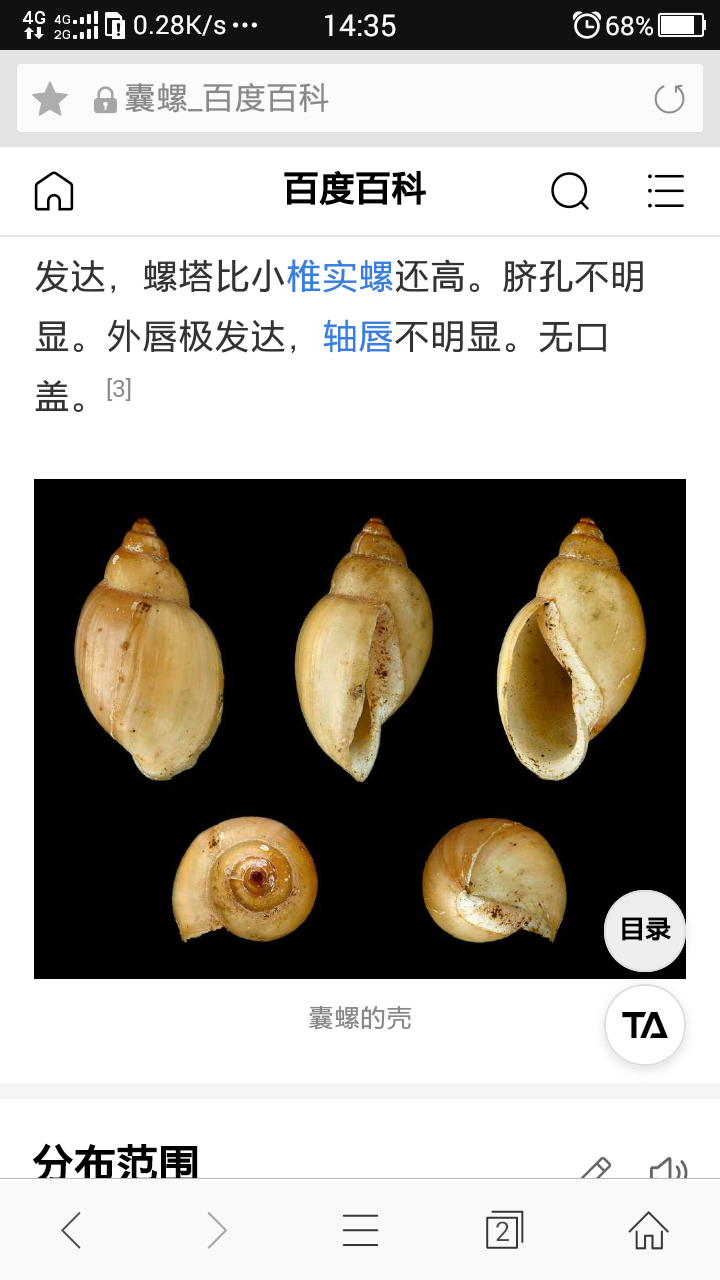 图那些搜索出来的图片,正经的囊螺一个没找到,膀胱螺和萝卜螺倒是混在一起。文字叙述也是乱七八糟,稀里糊涂,比如对生境的描述,淡水、咸水根本扯不清!资料编撰人和回答者自己脑袋里都是一团浆糊