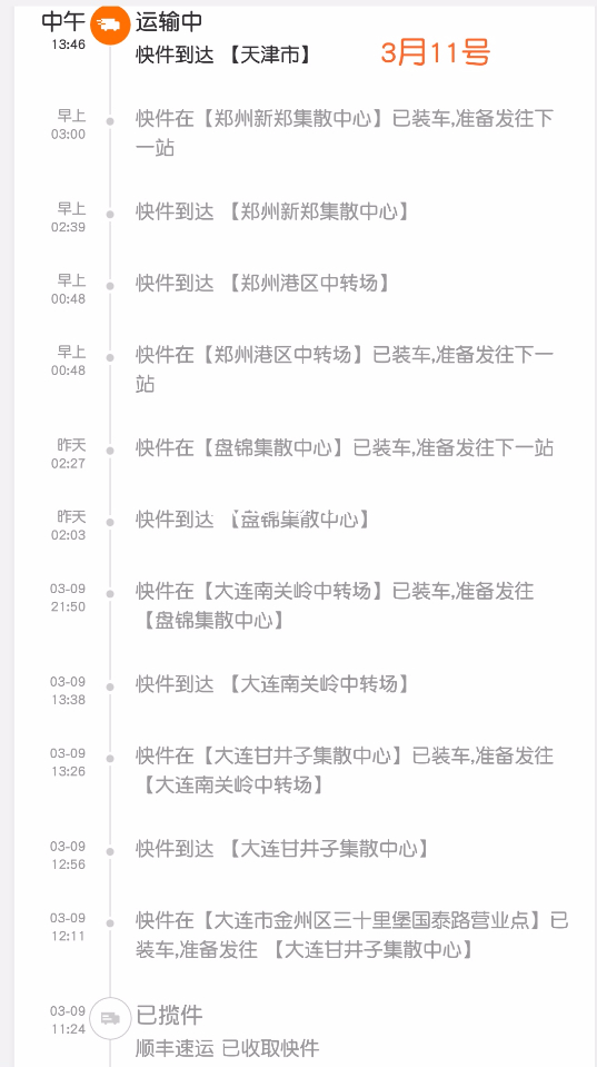 按照以往的快递经验,应该是从北京到包头高新集散中心,再到乌海。可这回发到郑州,一看错了,又返回天津,然后再去包头。来回浪费两天时间,早知如此,我还不如让发个邮政小包。