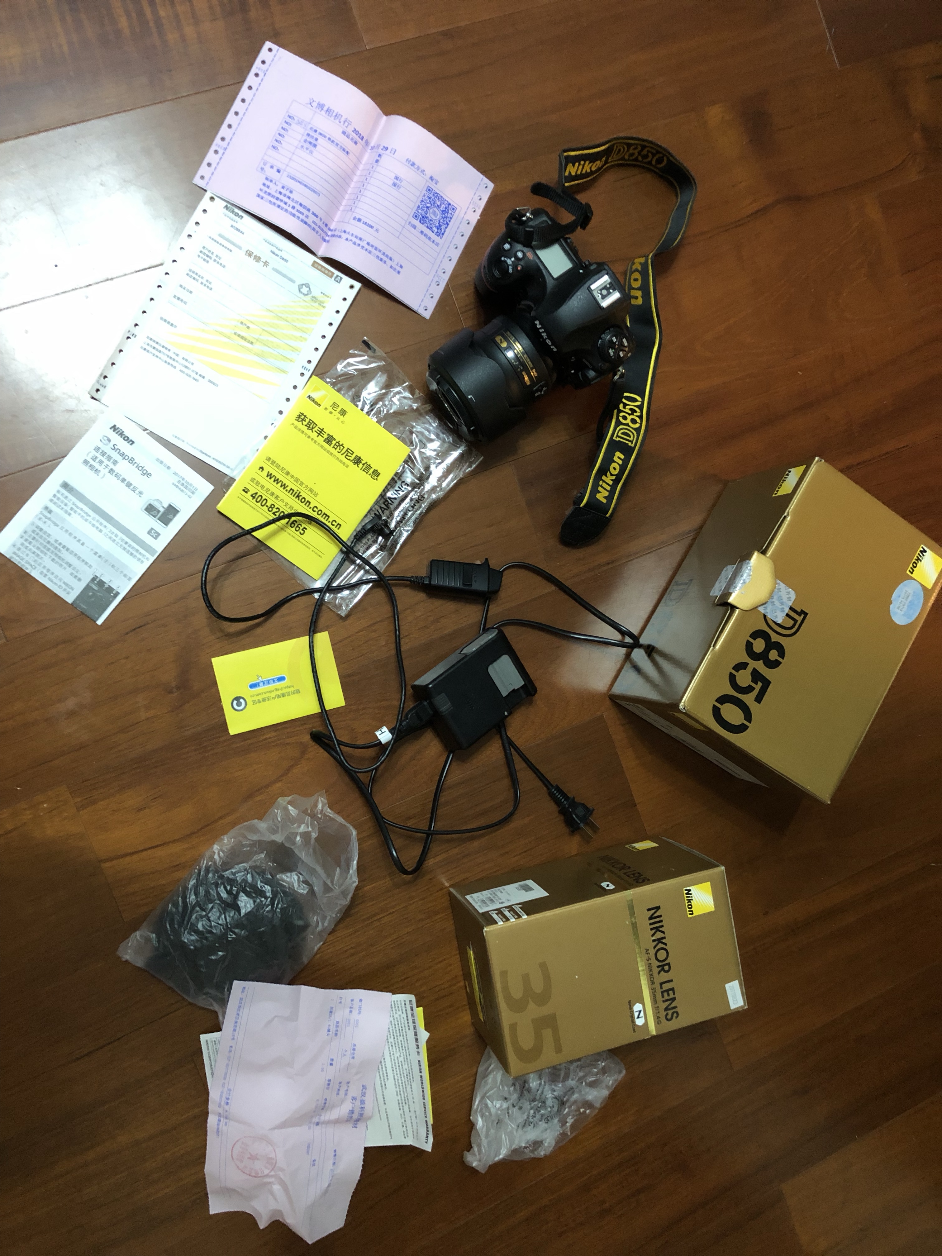 尼康 NIKON D850 国行 尼克尔35mm f1.4G 2018年10月底,机身购于“文博”,只在室内极少用于拍摄静物。包装、配件、齐全。无任何磕碰和维修。17500。