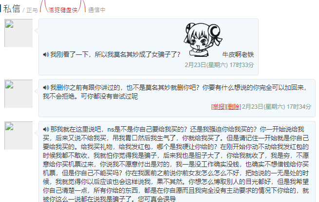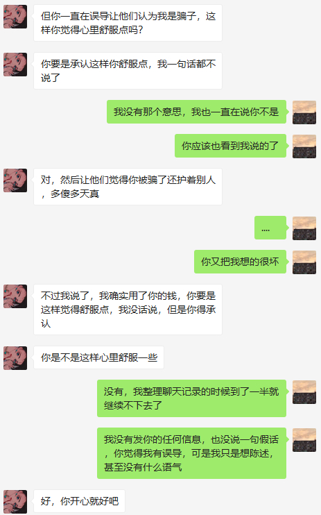之后帖子里有不少人说她是骗子,不过我都反驳了。人渣私信我这些。