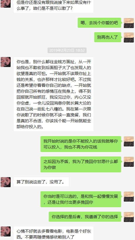 当时也是给自己洗脑了...什么最后相信一次真爱啥的,成了个瞎猫但没碰到死耗子,碰到个人精。