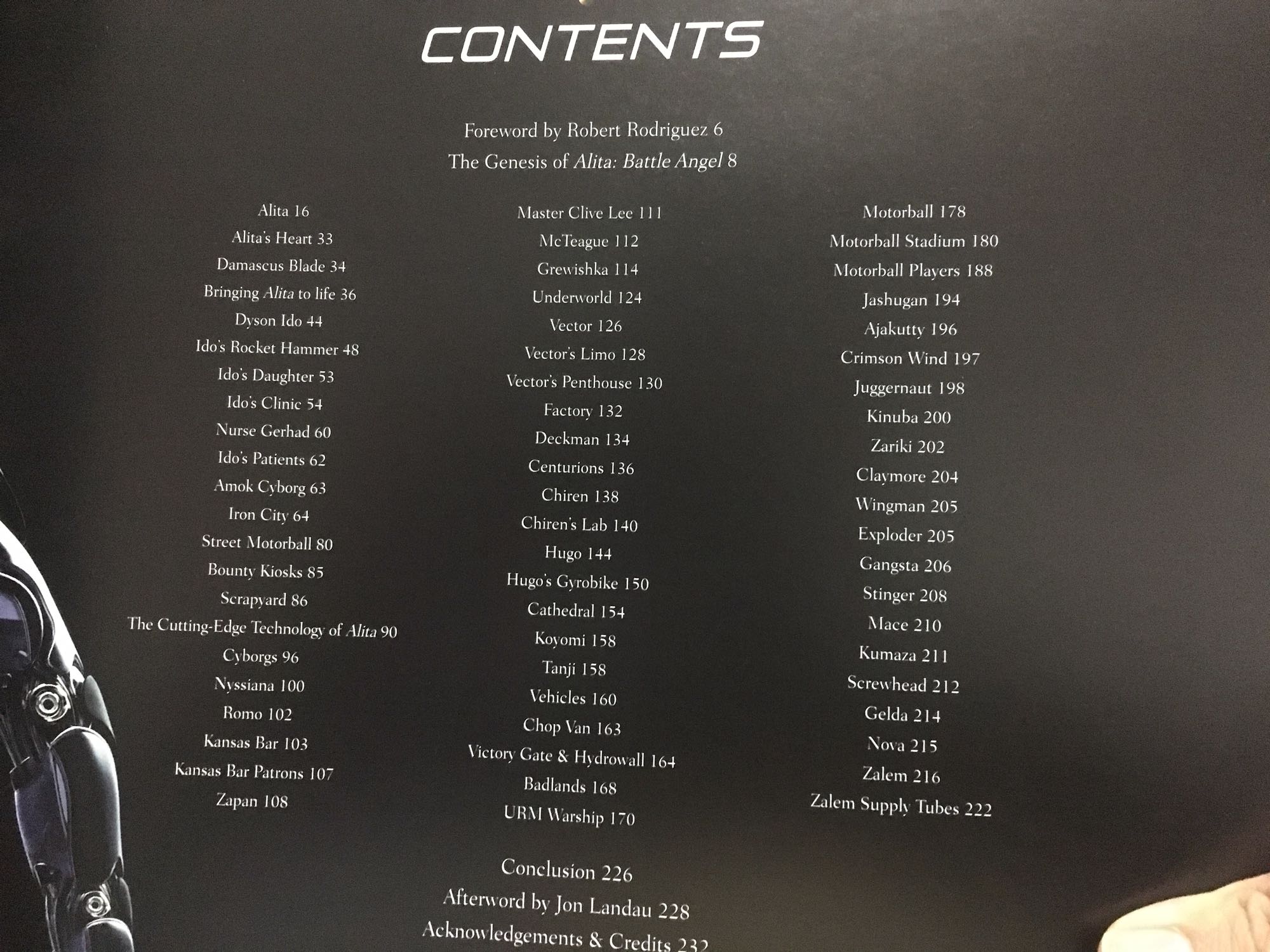 内容涵盖了电影各个方面的设定和原画。翻一下目录。包括阿丽塔。阿丽塔之心。大刀。伊德医生。锤子。伊德女儿。 诊所。 护士。伊德的病人。 女儿的凶手。钢铁城。街头机动球。太多了不说吧。几乎电影方方面面都有。 全彩铜板印刷。蛮好的。全英文还有很多彩图。