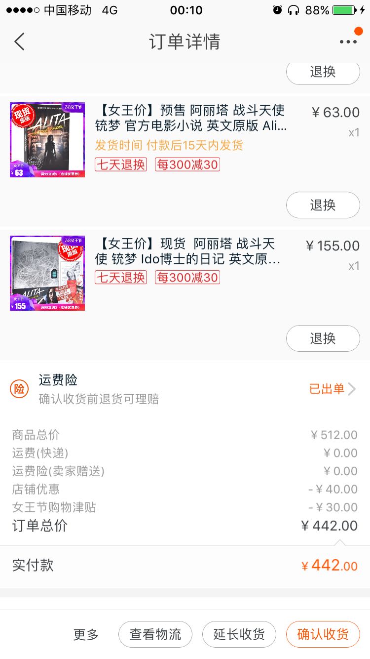 最后看一下价格。我是37那天活动买的。有优惠。总价442。 昨天晚上到了。 个人觉得英语不好看不懂但是有兴趣的可以买设定集和日记看看。 英语好的也可以买小说读读。