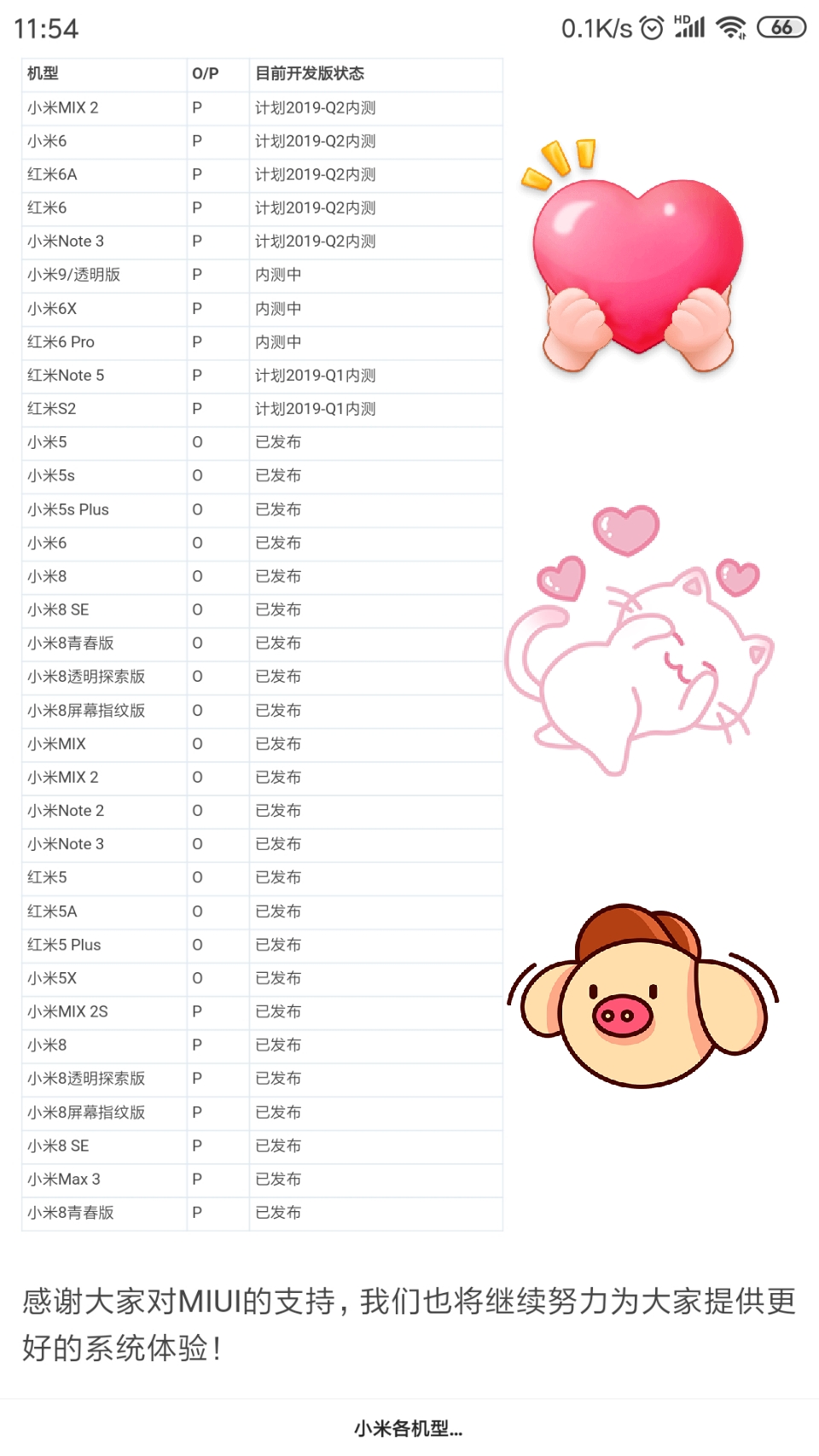 小米各机型2019-Q2安卓P适配计划表!感谢大家对MIUI