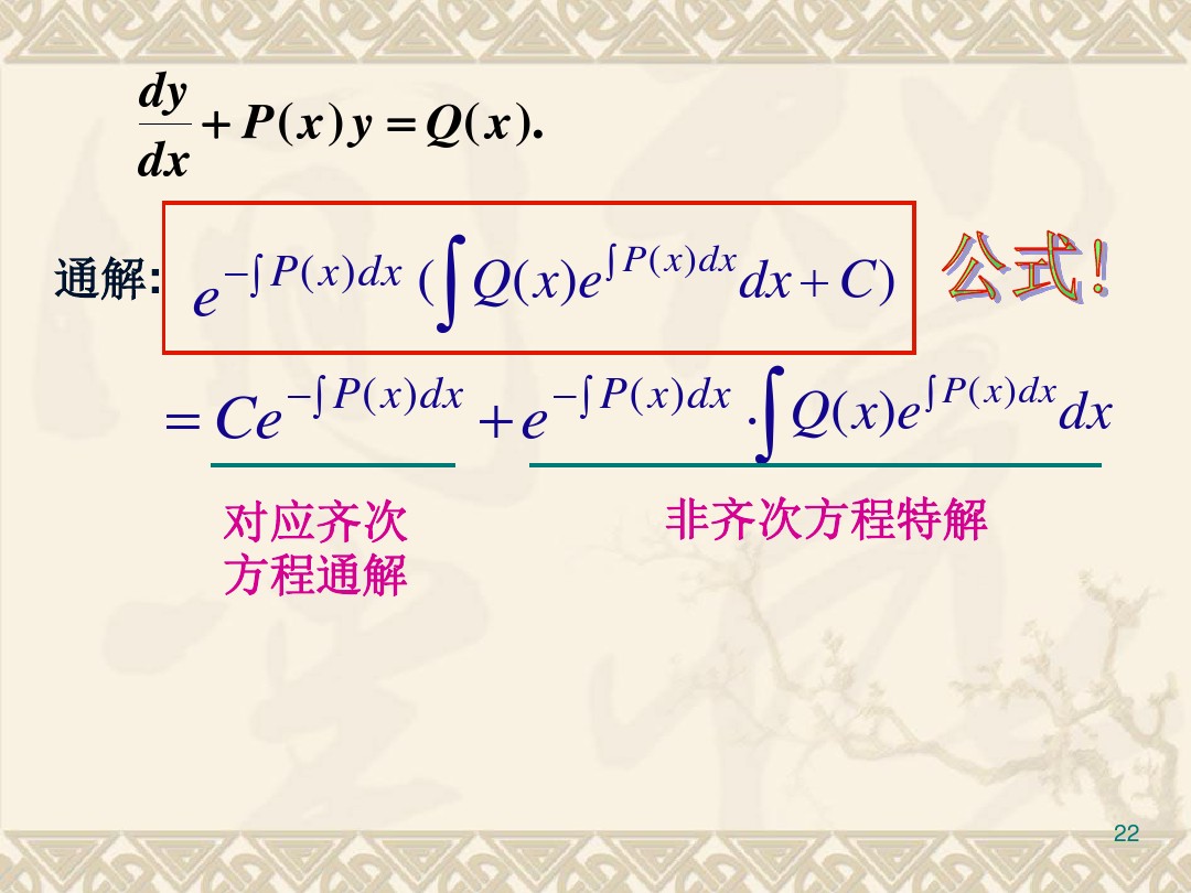 蓝色是对应的齐次方程,用分离变量的方法进行求解。