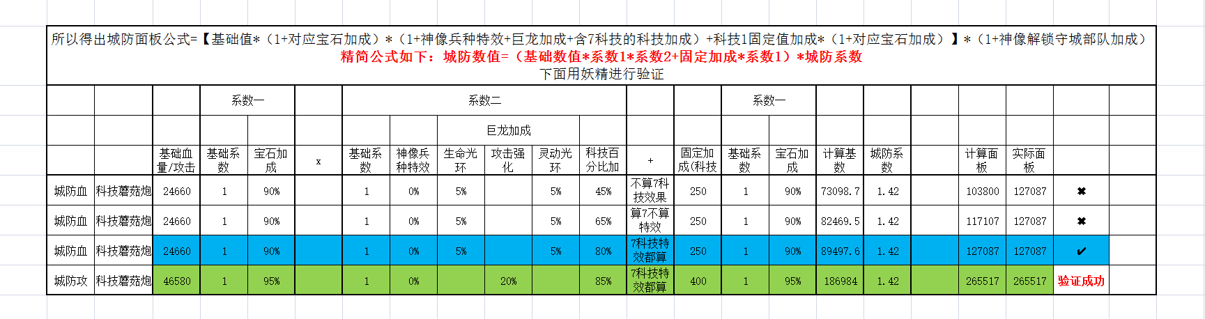 验证表明,城防公式没有问题。