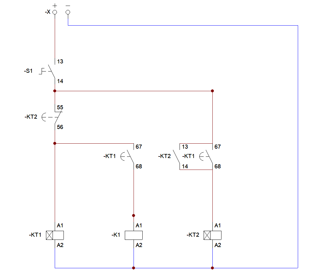 闭合s1后开始执行动作A:t1(2)秒后k1吸合,t2(3)秒后k1断开且不再吸合。