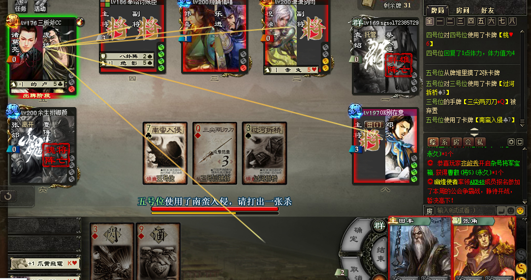 上次开局那么惨就是因为没杀被南蛮A掉了血,这次好歹有杀能防南蛮阵。还有两匹小马,只要首轮外面打的别太激烈,应该问题不d……