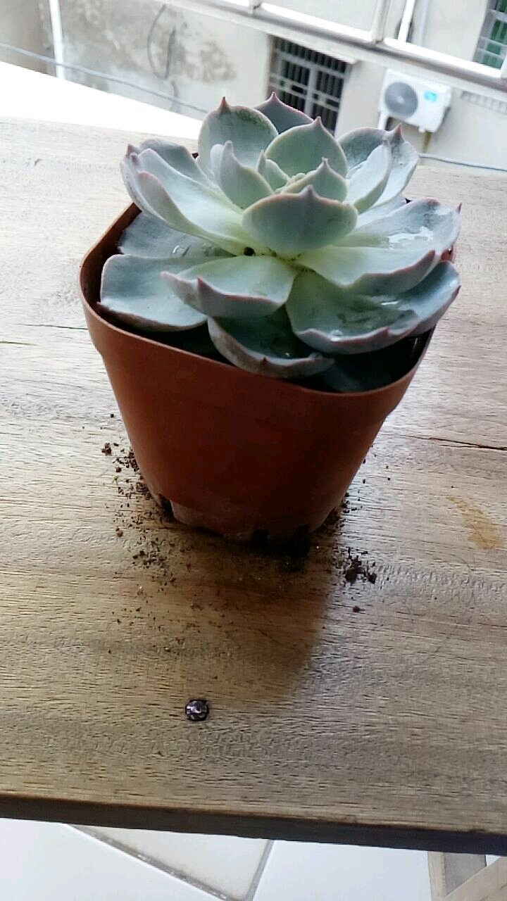 蓝石莲,不要用手摸叶片,不要让叶片沾水,放在阳光好的地方,不然会只长茎不长叶