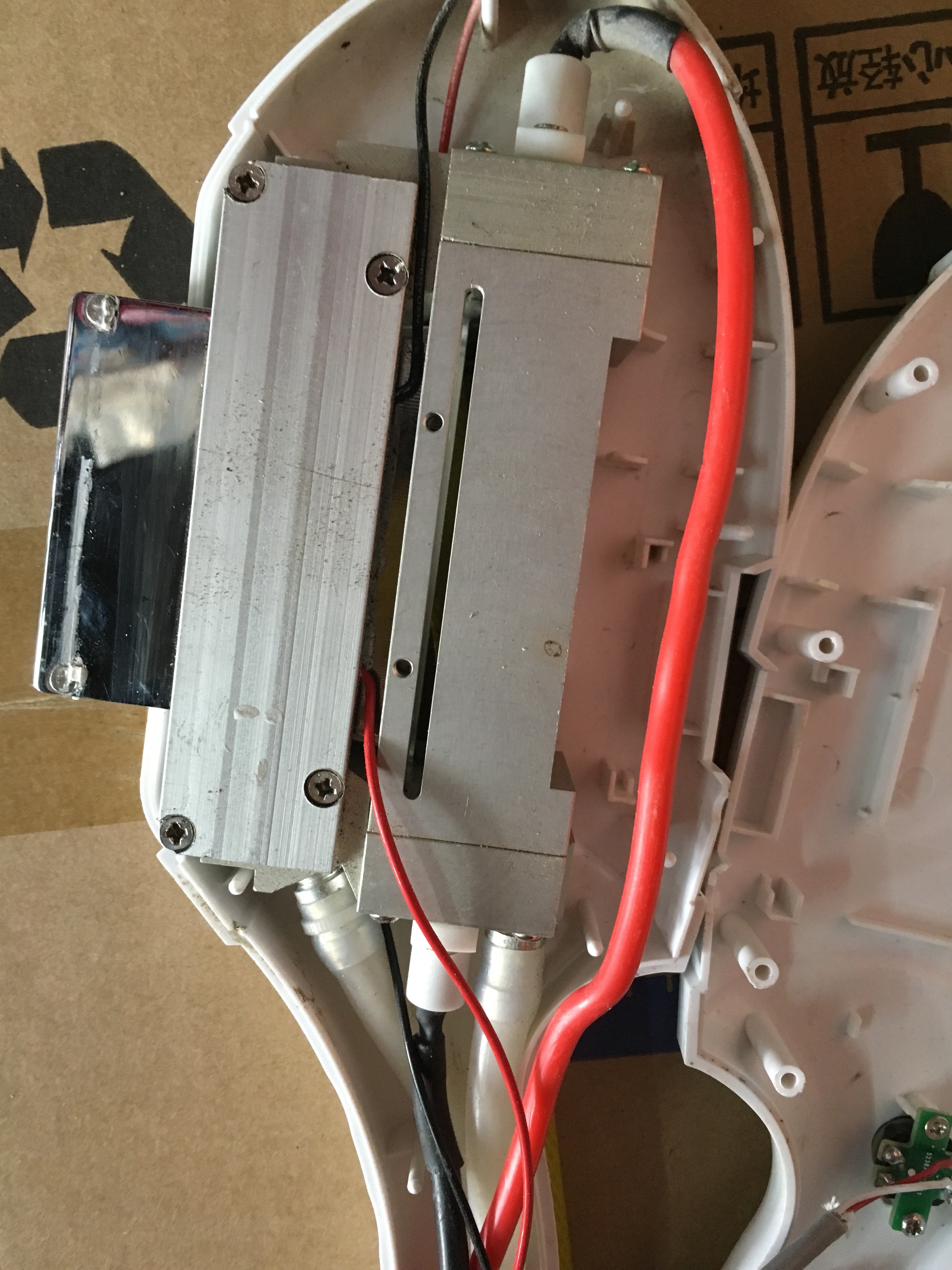 这手柄新的才不到2000。这个用过几次。我孩子大舅是卖这种机器的。前天看到他扔了一个说是能用,只不过掉地上外壳摔开了就扔了!这激光啪啪的打到手上很疼的。 但是被我给拆开了,不知道能卖多少钱?