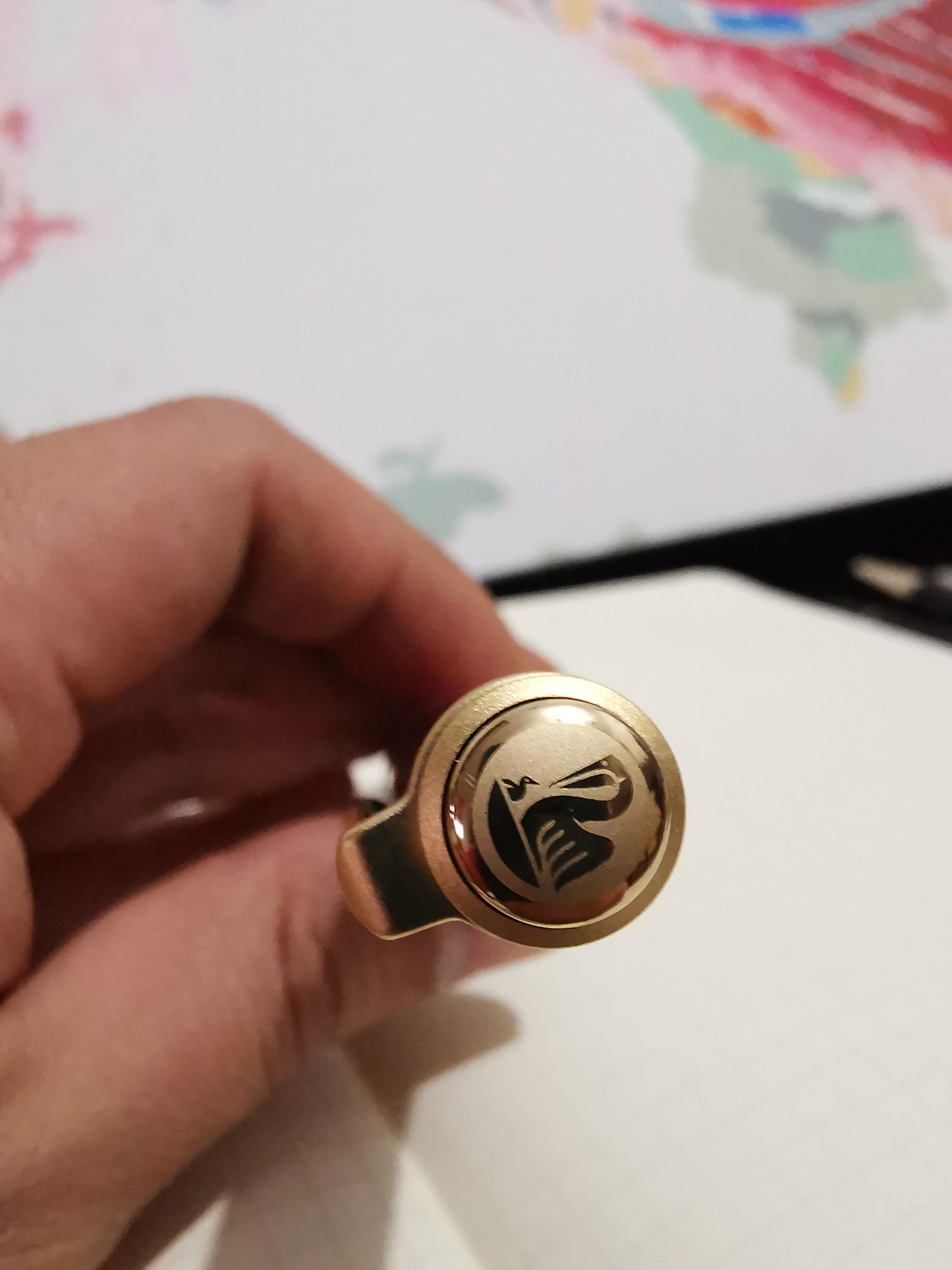 手机拍的,第一次发现华为自带的相机微距拍的那么清楚,说实话,笔没给我多大的惊喜,反而是盒子给了我惊喜,盒子挺喜欢的,哈哈,到手马上上了墨水,辉柏嘉的石榴红,试色很美,写出来有点淡,写感不知道,用过的笔不多,不知道怎么形容,f尖比龙的f细一点,可能和辉柏嘉墨水比较节制有关