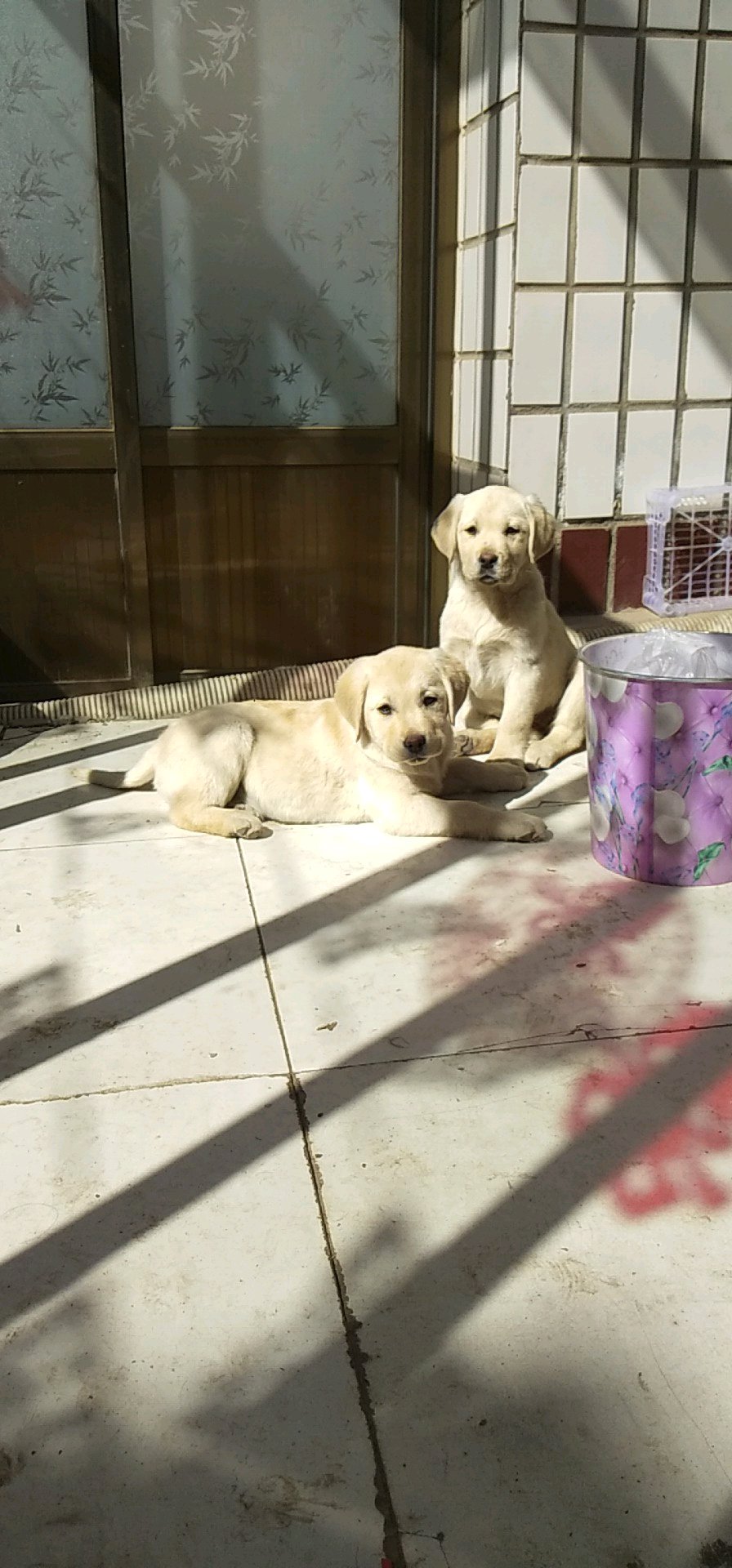 拉布拉多宝宝,两个小女孩