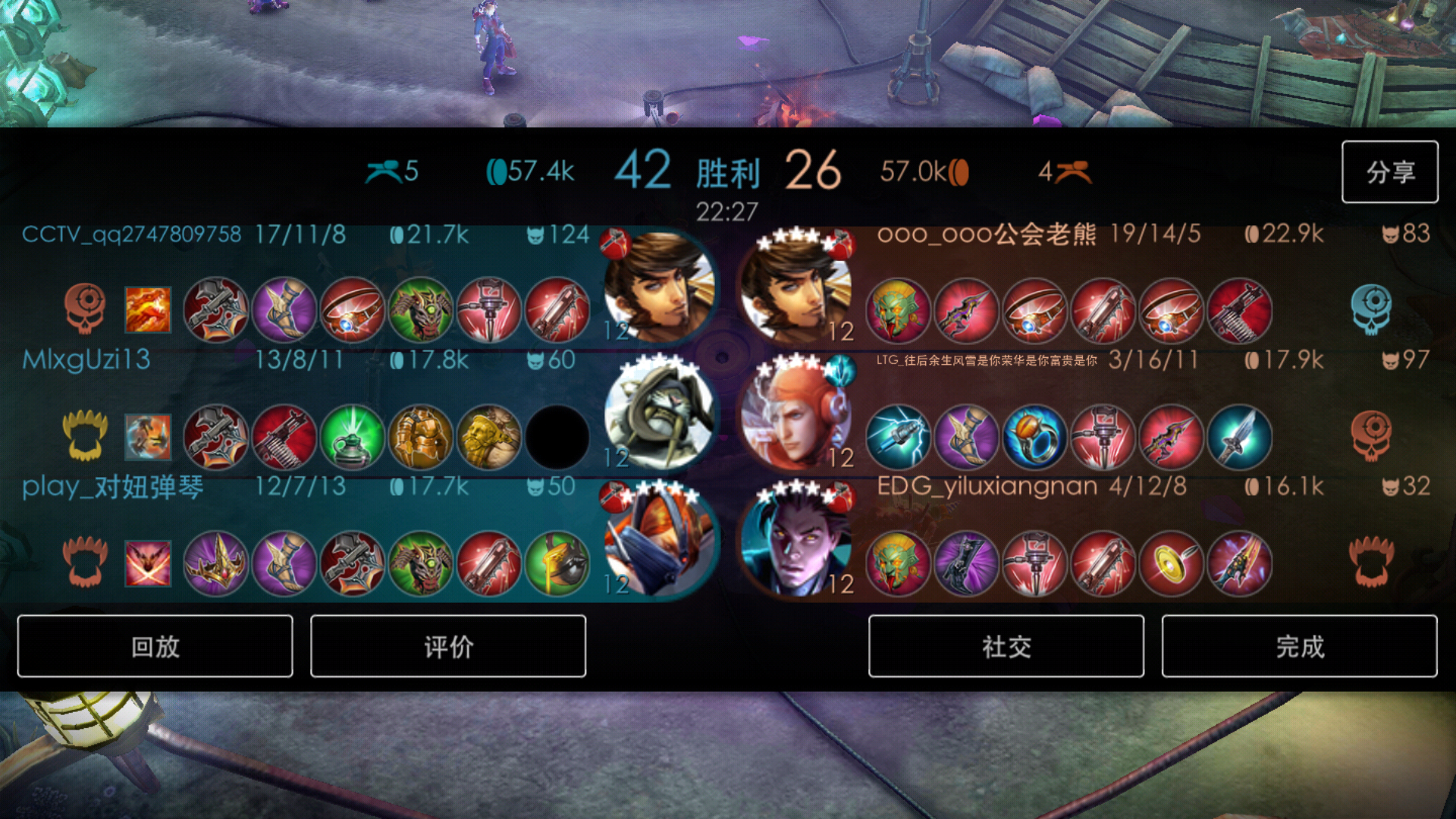 看见人头比了吧,开局我们就打出优势,人头比大概就是20:5。可是后期为什么打的那么悬呢,没有一点优势啦。对方出装有什么特点。