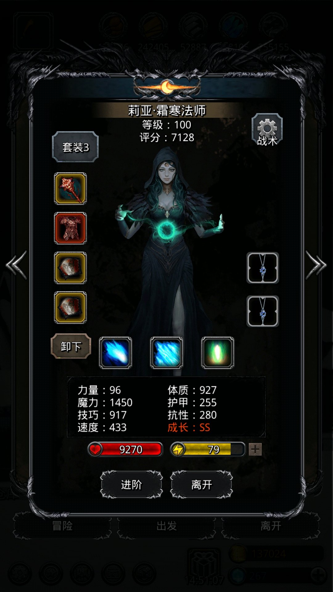 补充满意技能以及属性。