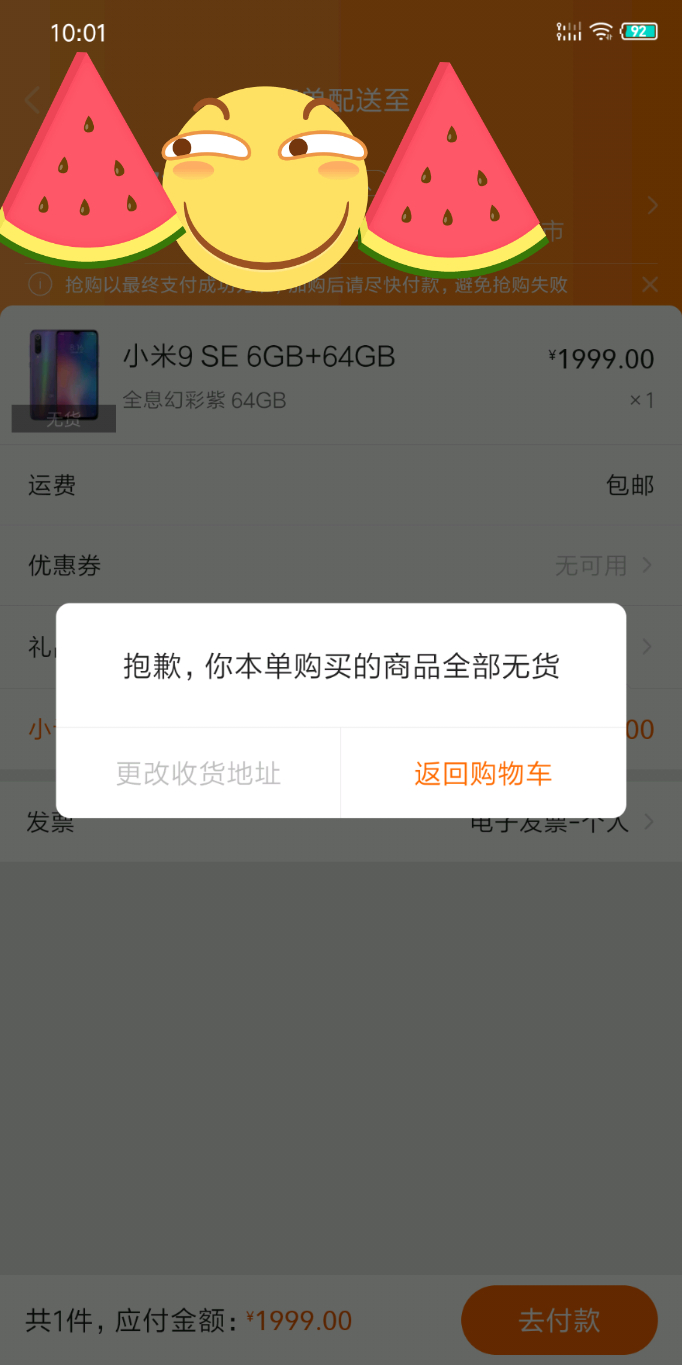 付款瞬间没货,活活点了一分钟,哎!放弃了