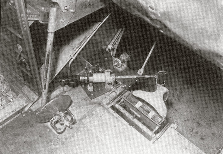 (B-24D加油机内部的牵引钢缆发射装置的照片)