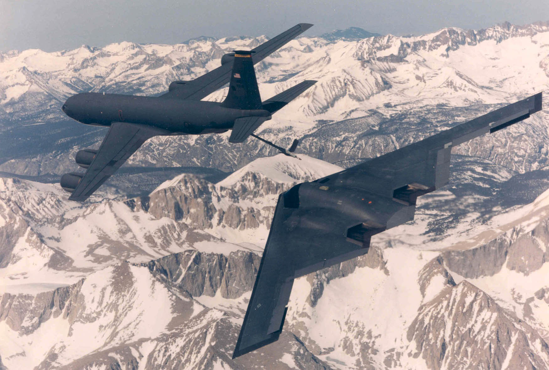 位置。在五次初期试飞任务结束以后他们又执行了七次实际空中加油行动,其中第六次飞行任务中有一架飞机为整场试验过程进行了拍摄工作。