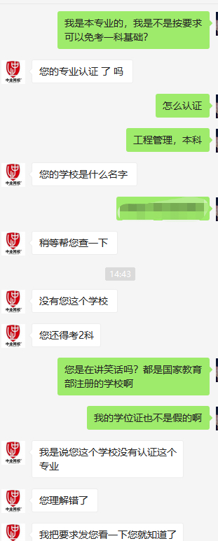 毕业两年了,工程管理毕业,本着今年想多考几张证,方便跳槽。然后毕业那年,国家取消的造价员证。没法考。等了一年左右的时间,终于出台了二级造价师考试,一看条件。哎呦我还是本专业的,能少考一门基础课,美滋滋哎。可是想着报个网课,咨询的时候,问人家,人家说我不符合,然后我就懵逼了,学校是国家教育部认证的,本科学位是教育部认证的,他妹的,为啥不符合。然后人家网课销售人员给我看了下免考条件。。。。。。-----------------------只有经教育认证的工程管理专业。-------------这个条件好气人呦。真的好柠檬。他妹子,全国也就50几所高校有免考资格,哈哈哈哈哈啊。不说了,哭着学习去了,被自己的智商笑哭了。。。。![[狂汗]](/static/emoticons/u72c2u6c57.png)