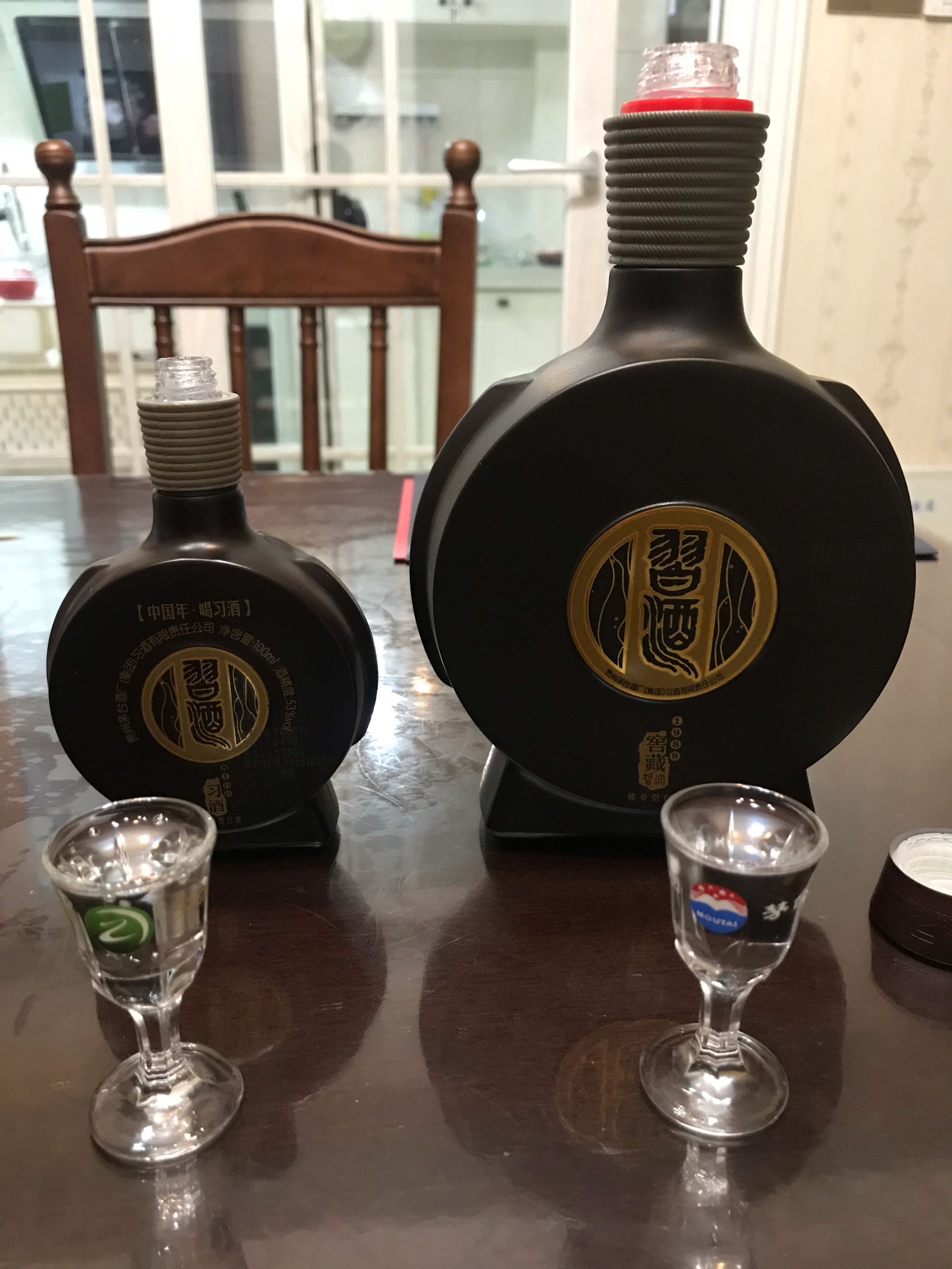 8100出酒慢,富有气泡,一分钟以上不散;1988出酒快,色泽略有黄;8100入口略有漆味,混合粮香窖香,感觉比1998略冲;1988入口舒服,香气弥漫口中,有很好的气化感,粮香和窖香带有果香,二个味道大有不同。