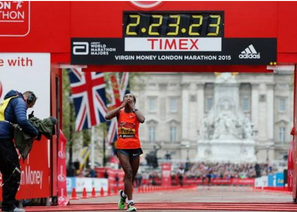 从电子计时牌下面撞线,冲刺要帅!